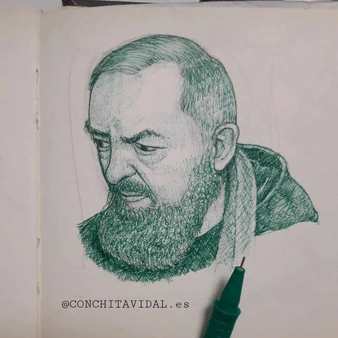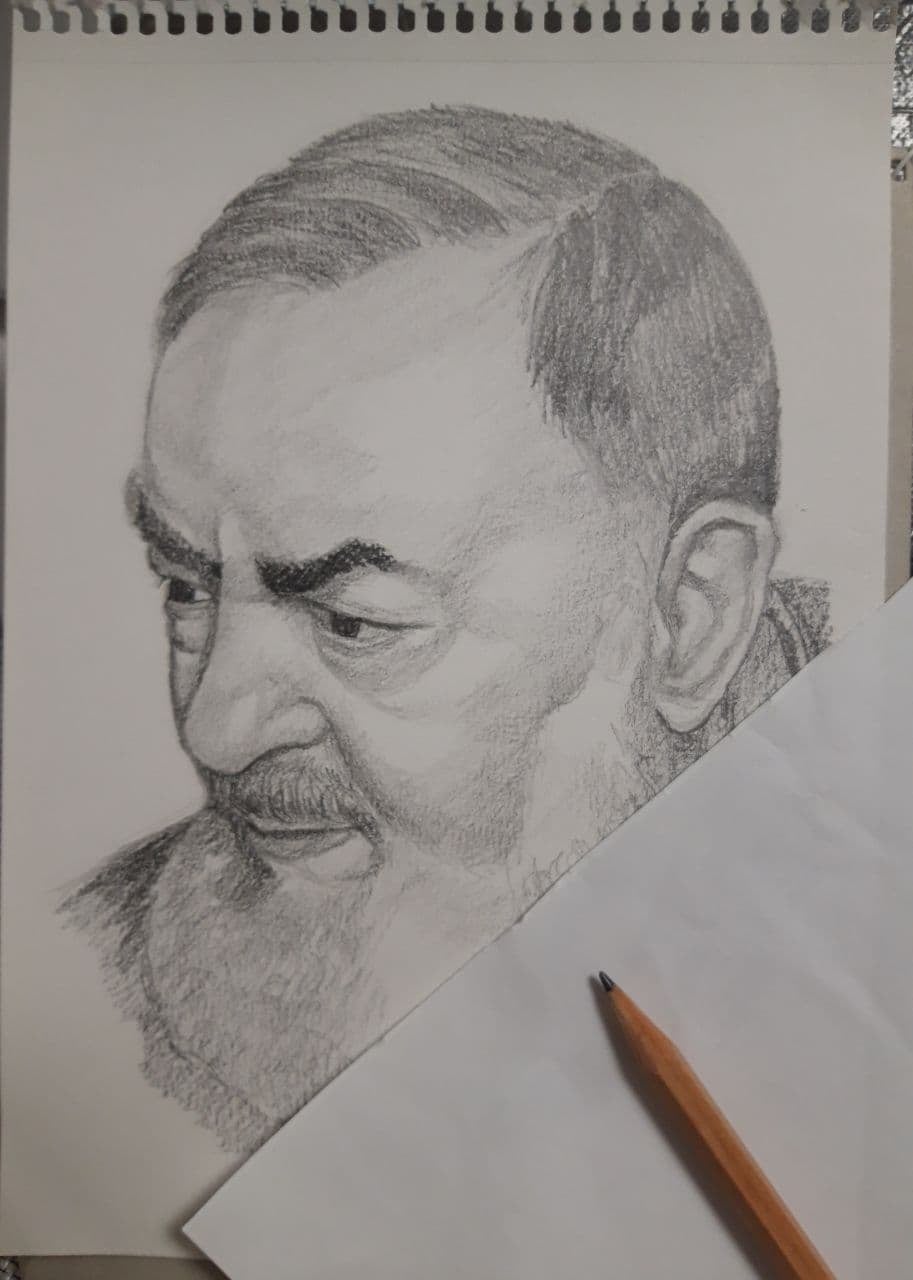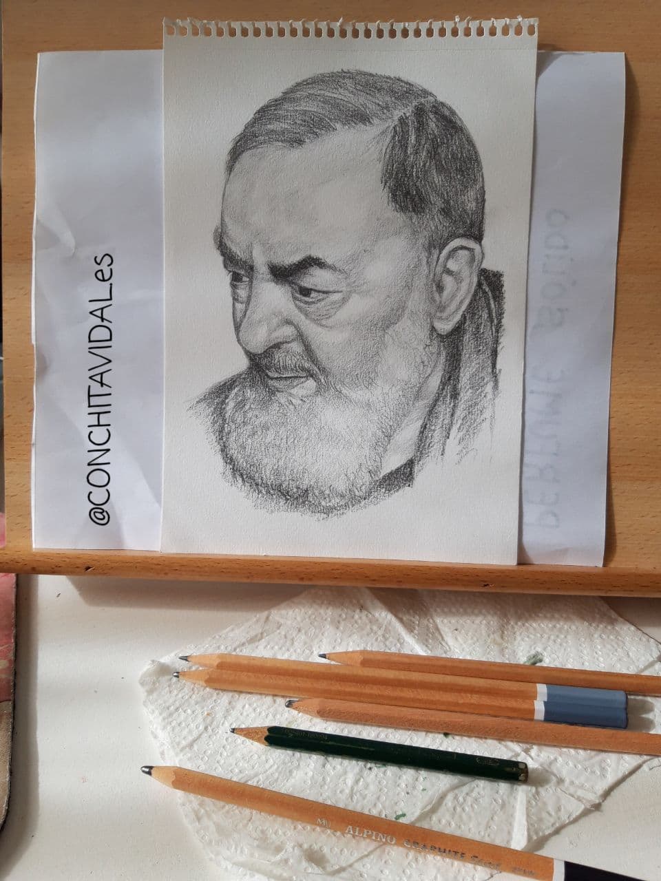 Encargo de retrato a lápiz del Padre Pío de Pietrelcina.