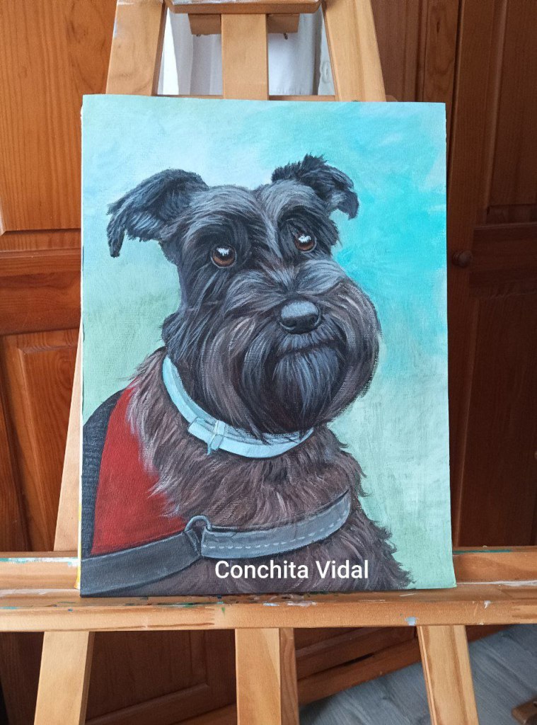Retrato en recuerdo de Princesa, una schnauzer gigante que hizo las delicias de sus dueños.